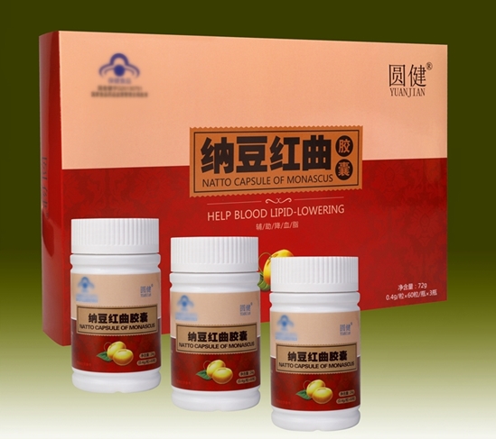 本品是以红曲、纳豆、硬脂酸镁为主要原料制成的保健食品,经动物和人体试食功能试验证明,具有辅助降血脂的保健功能。